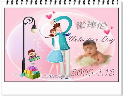 好早就答应阿霞帮小帅哥做份新年日历,可因为种种原因现在才能静下来帮她做。昨天下了一些软件,开始了我的第一次日历制作过程。因为系统重装,很多字体软件都不见了,下软件找图片一直做到凌晨一点才睡!可能是因为比较赶,图片没找到很pp的,今天看起来感觉很俗气,结果把昨天做的全都否决,今晚又重新做了几张。今年的情人节就是这样过了。