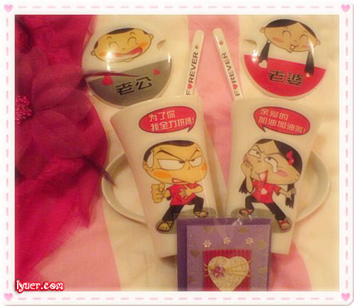 今天过去又看到一种心型的礼物盒,正好可以把他们放在里面,感觉那对情侣手杯也不错,所以