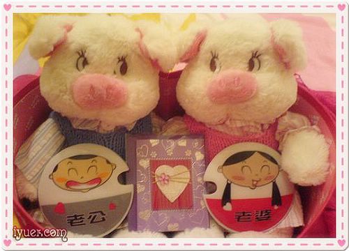 今天晚上出去为欢儿挑选了一份结婚礼物,几天前就在饰品店看到这一对小香猪瞒可爱的,